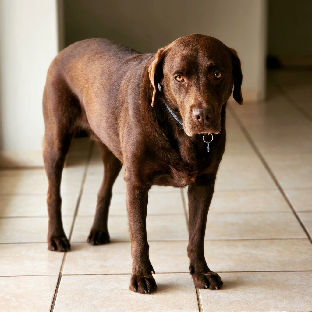 Shadow is a mature chocolate Labrador whose world revolves around the humans he loves. Calm, affectionate, and deeply bonded, he enjoys being close to his people and finds comfort in their presence. He’s a sensitive soul who thrives on routine, reassurance, and inclusion as part of the family.